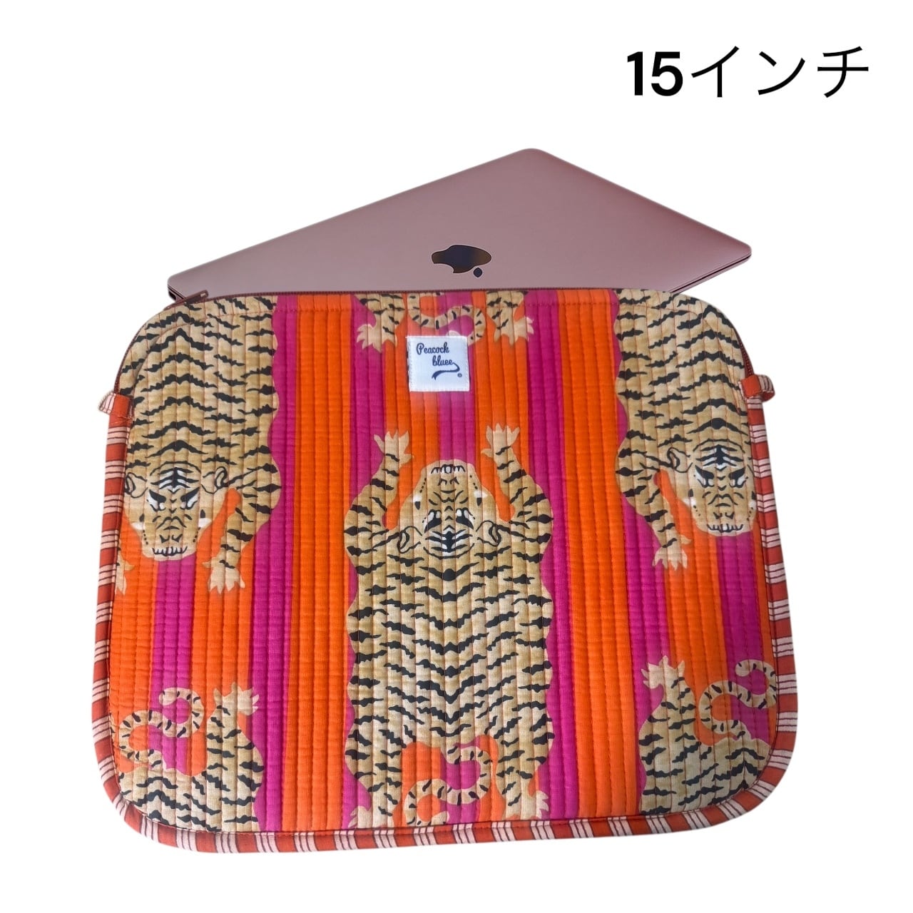 インドのプリント柄が目を引くパソコンケース。15インチのPCまで対応。