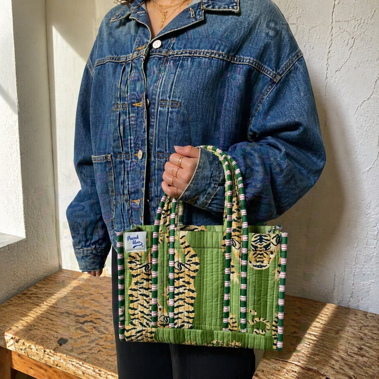インドのプリント柄が特徴の中綿トートバッグです。お弁当やちょっとした荷物を入れるのにちょうどいいコンパクトサイズで、気軽なお出かけやサブバッグとしてもおすすめです。リバーシブル仕様で、使うほどに愛着が湧くデザインです。内ポケットもあり、日常使いに便利です。このバッグで、日常に個性と便利さをプラスしてみませんか?